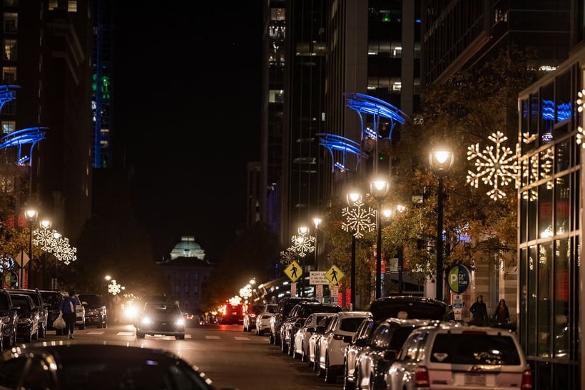 During the winter, RCV decorates Downtown Raleigh with snowflake lights on banner poles lining Fayetteville Street. The Fayetteville Street Snowflakes get people excited to visit downtown and make for the perfect backdrop during winter activations including DRA's Illuminate Art Walk and RCV's Downtown Raleigh Tree Lighting.
